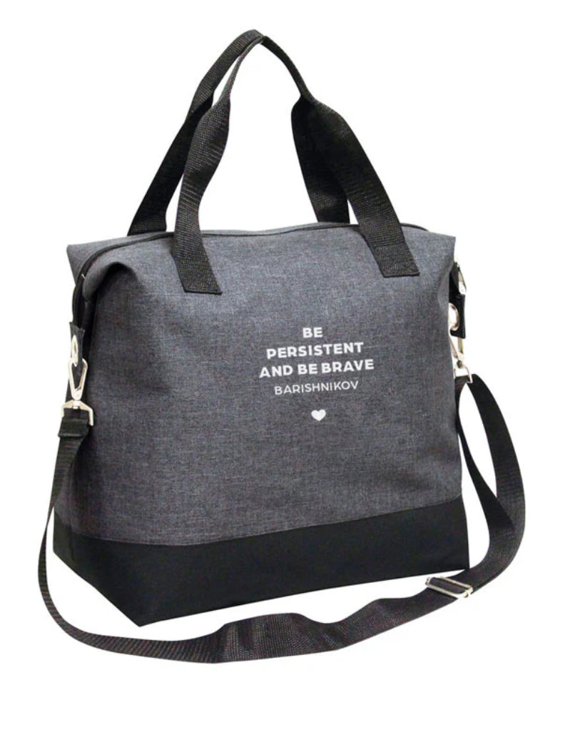 Decorated with this encouraging dance quote, "Be persistent and be brave" from ballet great, Mikhail Baryshnikov, this dance bag hold more than you think it will. It's great for long hours at the studio or for backstage on rehearsal days.